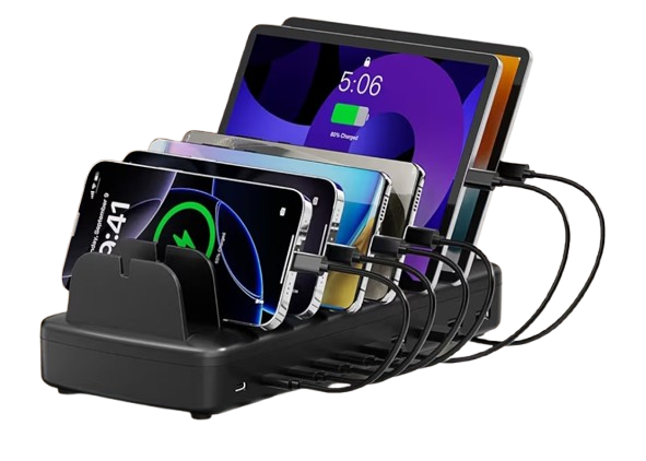 A fast charging station for multiple devices is a convenient and efficient solution designed to power several gadgets at the same time while keeping your space neat and organized. This multi-device charging hub typically features multiple USB ports and sometimes USB-C fast charging technology, allowing smartphones, tablets, smartwatches, earbuds, and other electronic devices to charge quickly and safely from a single station. Built with advanced safety protections such as over-current, over-voltage, and temperature control, it ensures reliable performance and protects your devices during charging. Its compact and space-saving design makes it perfect for desks, nightstands, offices, or family charging areas, helping eliminate cable clutter while providing a central place to keep all your devices powered and ready to use. Ideal for homes, workplaces, and travel, a fast charging station offers both convenience and efficiency for modern multi-device lifestyles.